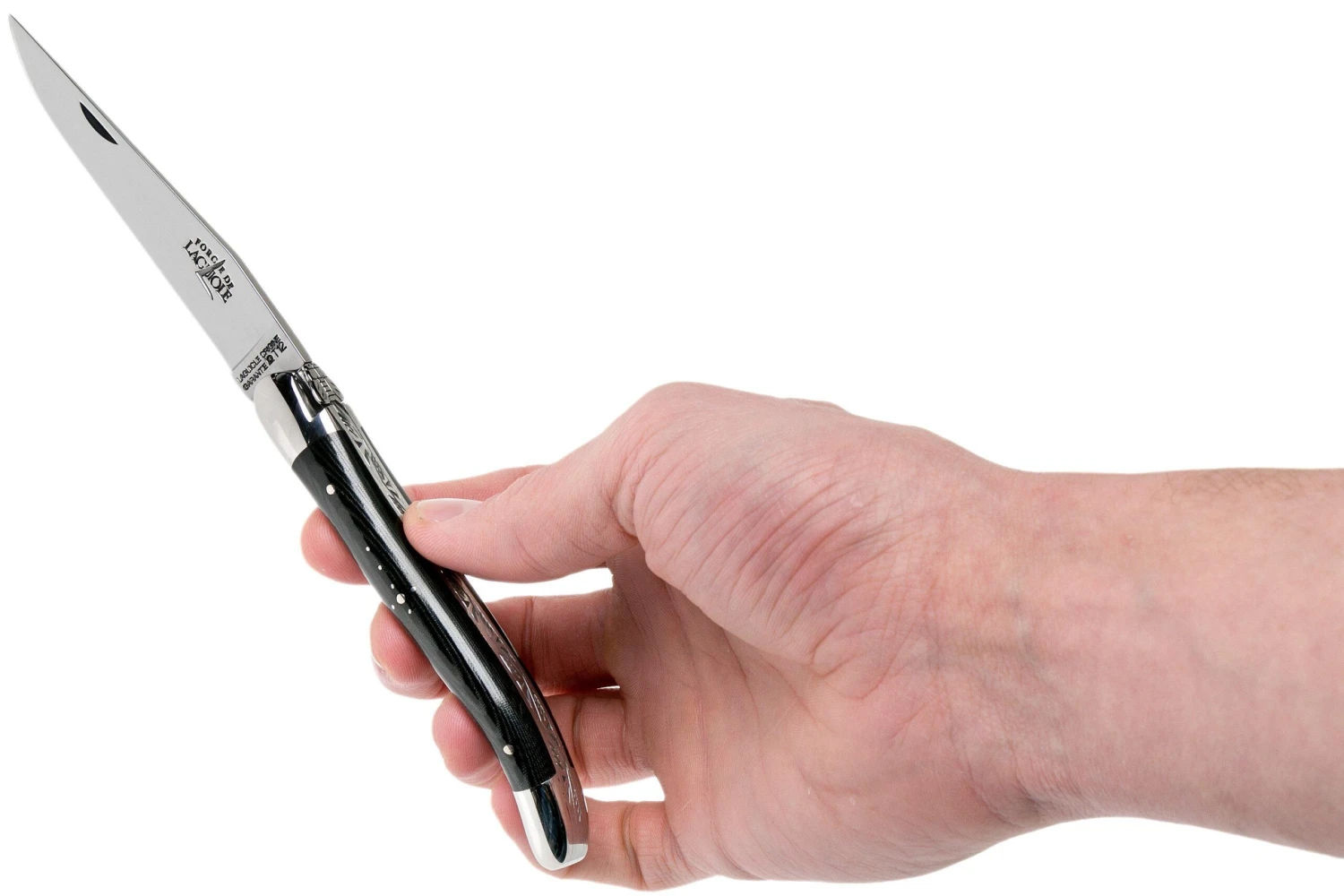 Ce Forge de Laguiole 1211 est un superbe couteau Laguiole à un prix très intéressant. La lame a une finition polie, tout comme les mitres. Le manche est en micarta. Un matériau composite fait avec de la résine et de la fibre de verre.