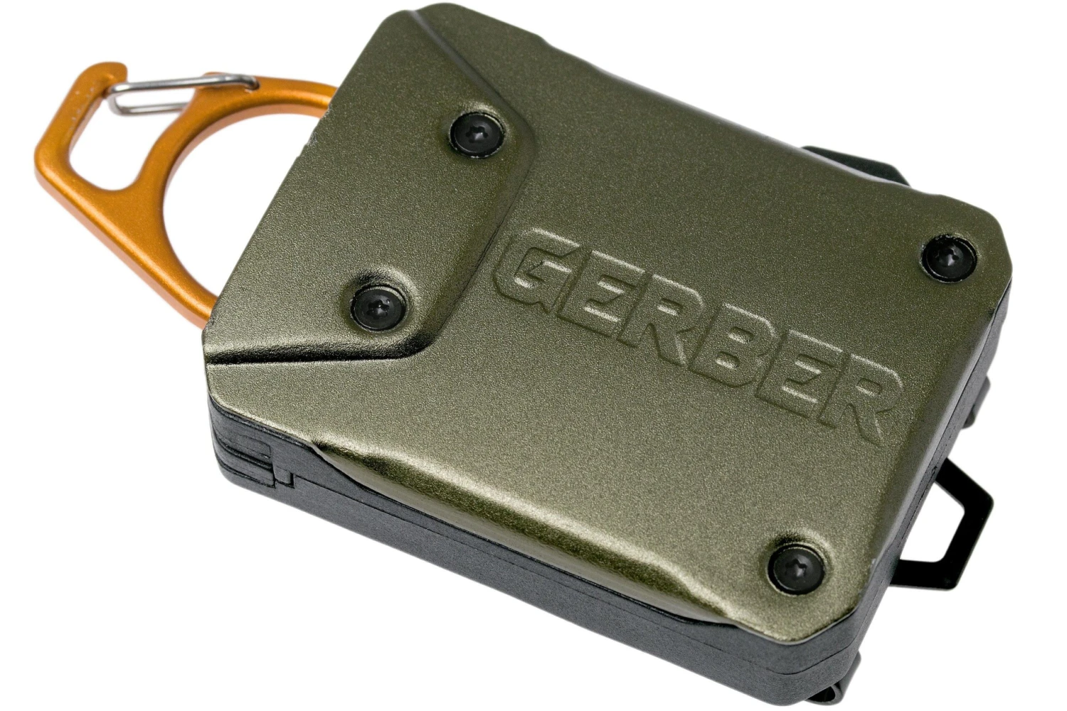 Le Gerber Defender Large est un rétracteur à engrenages léger conçu pour la pêche. Le mousqueton en aluminium anodisé orange est très pratique pour attacher des outils comme une paire de ciseaux.