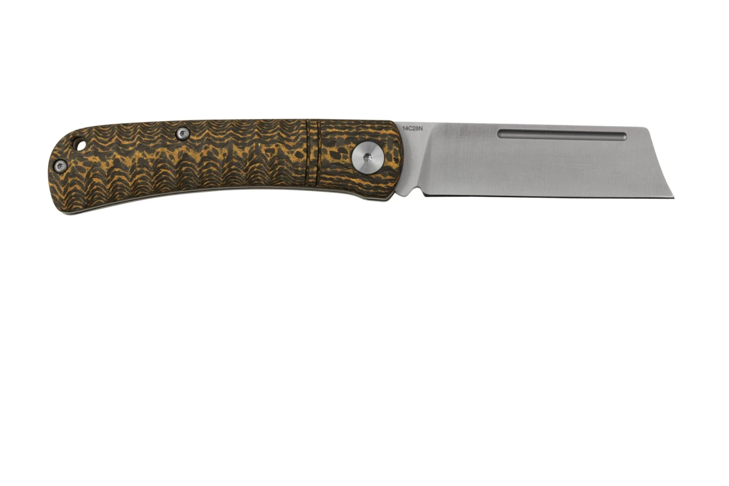 Le QSP Knife Hedgehog Golden Carbon Fiber est un couteau de poche slipjoint bien solide. On a l’habitude avec les couteaux QSP, mais ce Hedgehog n’y fait pas exception : le rapport qualité-prix est excellent. Ce couteau est doté d’un mécanisme slipjoint. Cela signifie que le couteau ne se verrouille pas complètement. Idéal pour les pays dont la loi l’interdit ! On ouvre ce couteau de poche slipjoint facilement à deux mains, grâce au large nailnick.